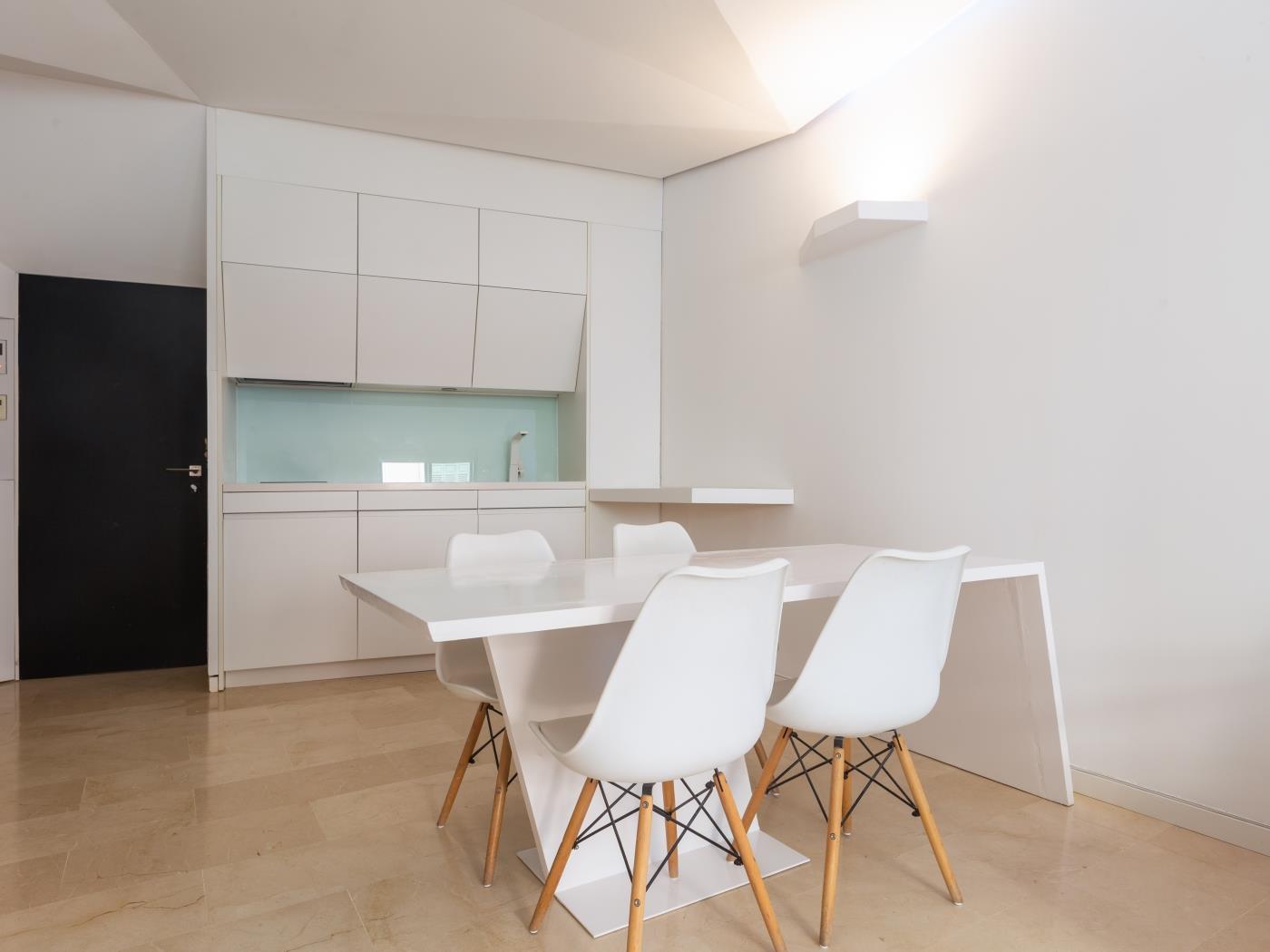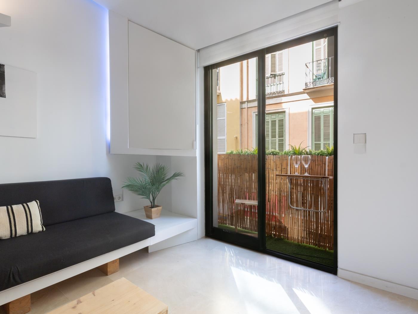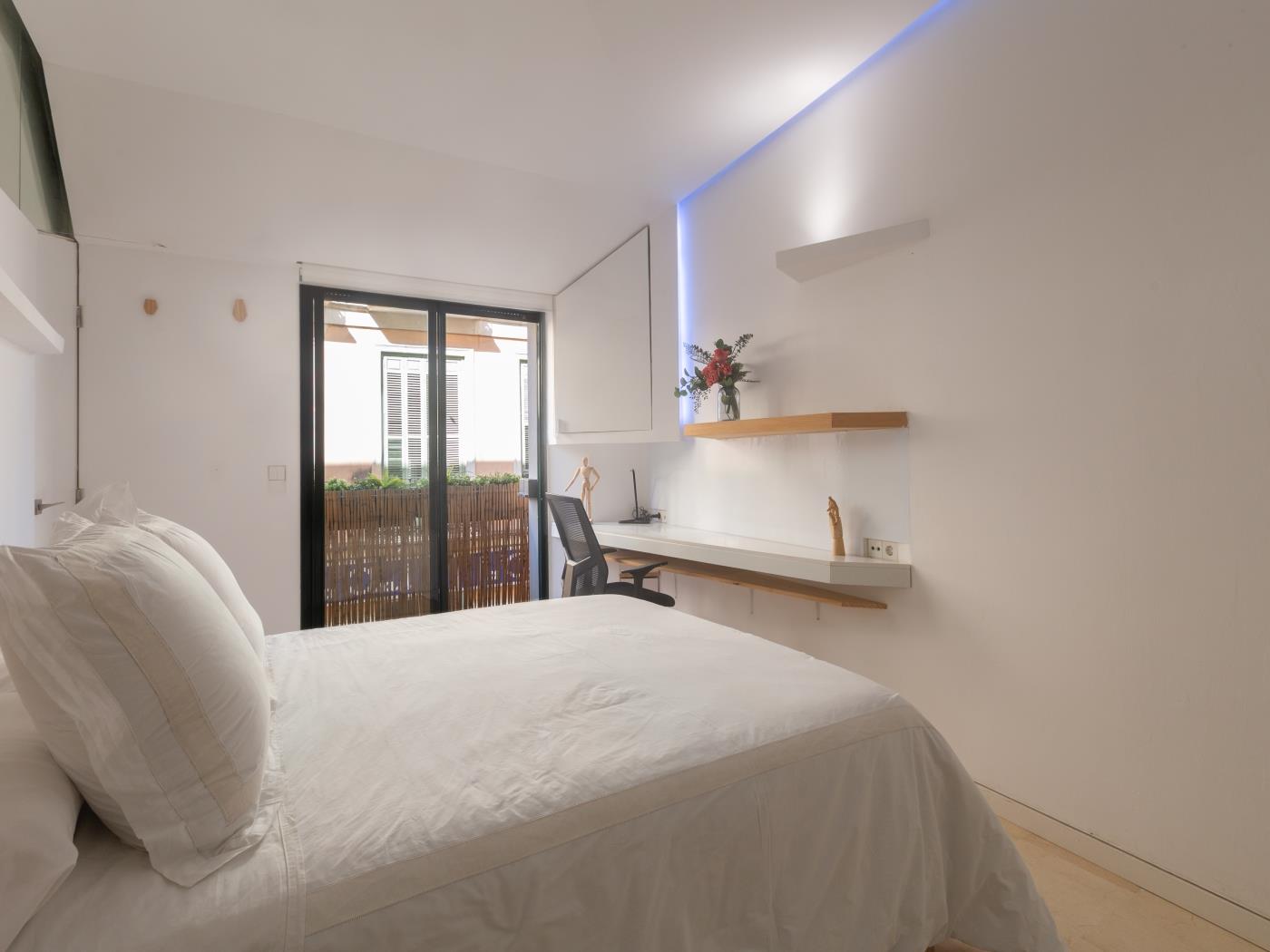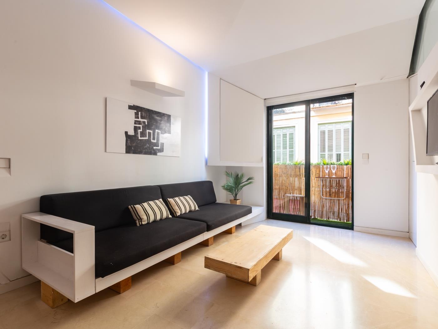 Tiene dos pequeños balcones con vistas maravillosas a la portada-torre de la iglesia de San Juan, una de las más emblemáticas del centro de Málaga. El apartamento destaca también por su cuidada arquitectura, donde destaca el concepto con el que ha sido diseñado su techo, a modo de papel que se va doblando para evocar la técnica del origami, con pliegues que conectan visualmente y formalmente todos los ambientes. Este techo dinámico varía en altura a medida que uno se desplaza, creando un flujo constante entre las habitaciones, dilatando o comprimiendo los espacios. El diseño busca fusionar la tradición arquitectónica del lugar con una propuesta contemporánea que acentúa la sensación de amplitud y movimientoA un lado de la pequeña calle encontramos la iglesia de San Juan y al otro la popular plaza de Camas, con sus conocidos cafés, restaurantes, y una zona de juegos para niños. Situado a solo dos minutos andando del histórico Mercado Central de Atarazanas, y a cuatro minutos andando de la famosa calle Larios.