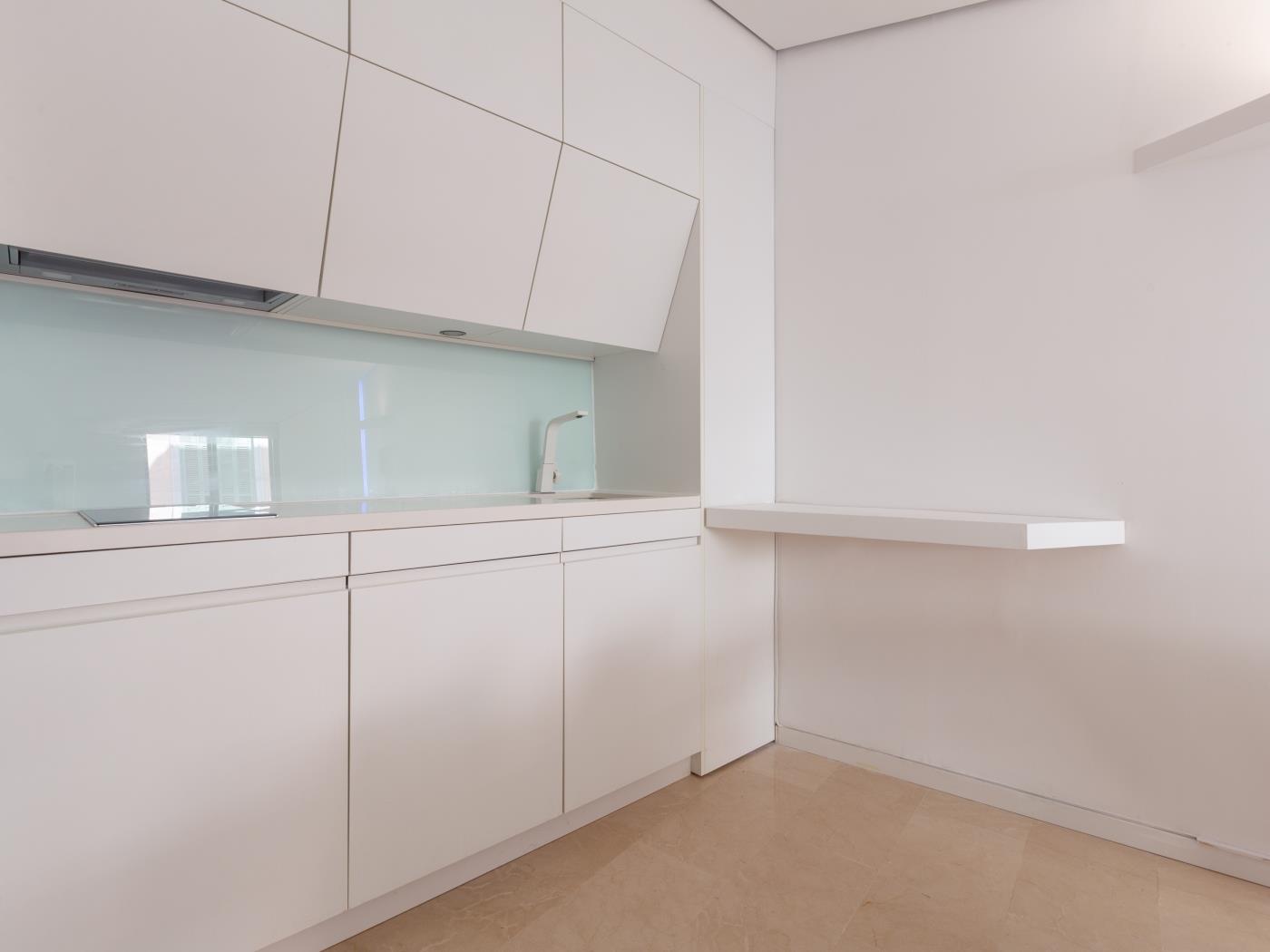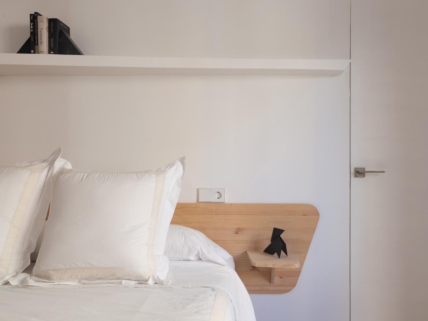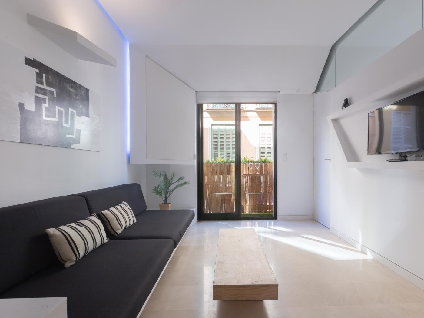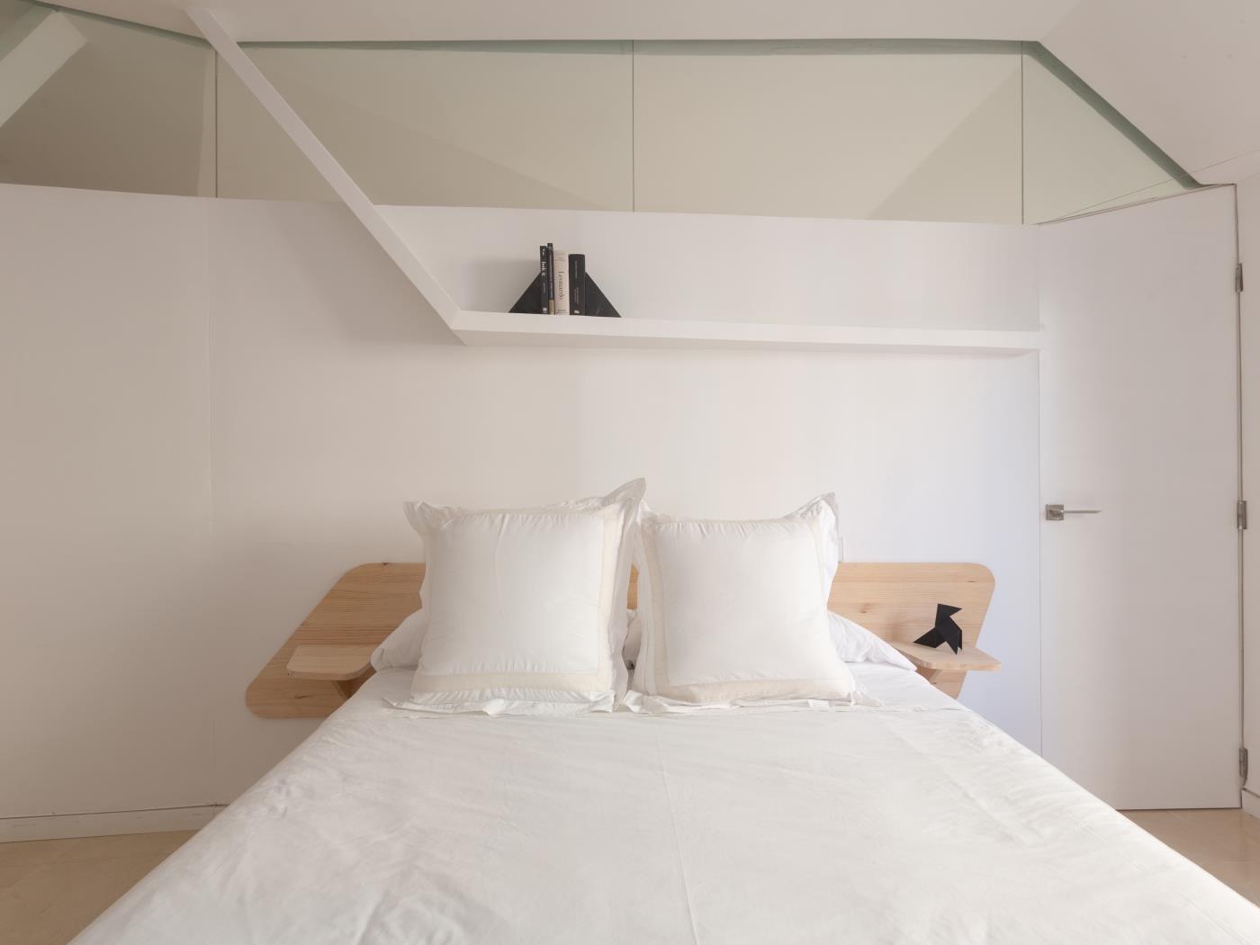 Tiene dos pequeños balcones con vistas maravillosas a la portada-torre de la iglesia de San Juan, una de las más emblemáticas del centro de Málaga. El apartamento destaca también por su cuidada arquitectura, donde destaca el concepto con el que ha sido diseñado su techo, a modo de papel que se va doblando para evocar la técnica del origami, con pliegues que conectan visualmente y formalmente todos los ambientes. Este techo dinámico varía en altura a medida que uno se desplaza, creando un flujo constante entre las habitaciones, dilatando o comprimiendo los espacios. El diseño busca fusionar la tradición arquitectónica del lugar con una propuesta contemporánea que acentúa la sensación de amplitud y movimientoA un lado de la pequeña calle encontramos la iglesia de San Juan y al otro la popular plaza de Camas, con sus conocidos cafés, restaurantes, y una zona de juegos para niños. Situado a solo dos minutos andando del histórico Mercado Central de Atarazanas, y a cuatro minutos andando de la famosa calle Larios.