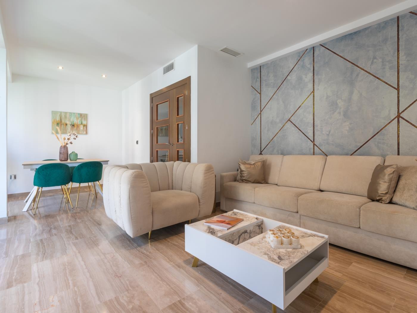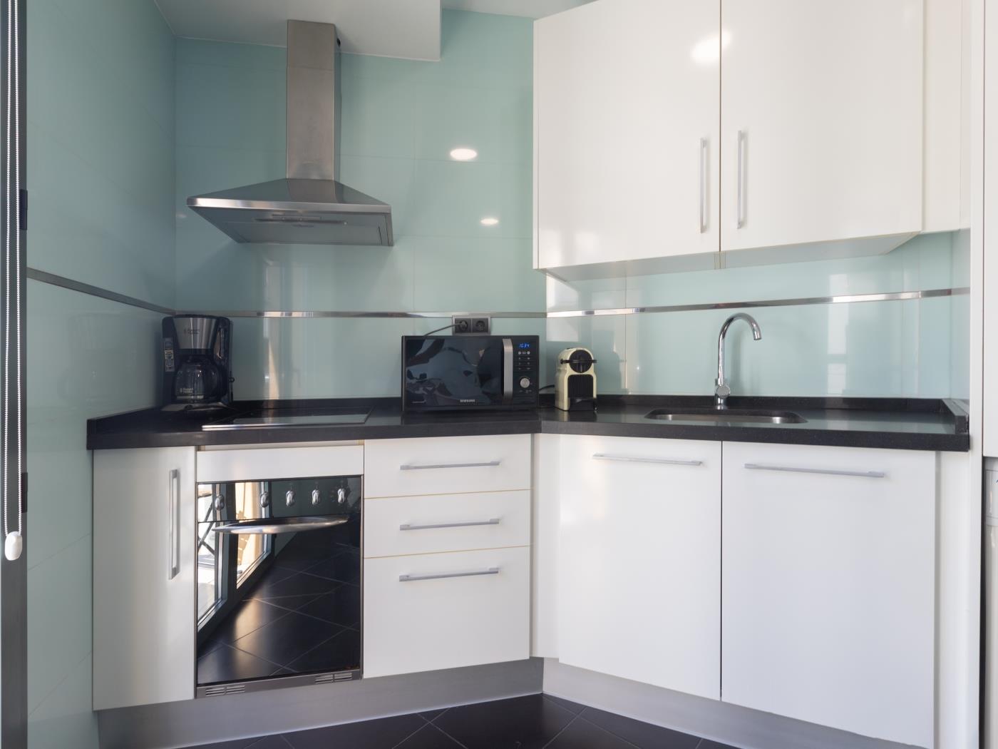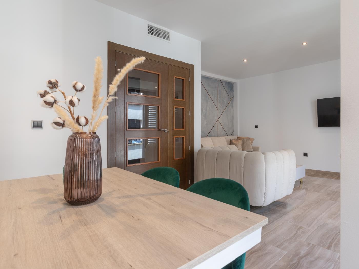 El apartamento dispone de todas las comodidades para el uso de nuestros huéspedes: lavadora, Smart TV, hervidor de agua, secador de pelo, plancha, cuna para bebé, etc. WIFI gratuito, internet. Cuenta con aire acondicionado frío/calor. Los huéspedes disponen de un servicio exclusivo de atención médica gratuita (no hospitalaria) durante la estancia.