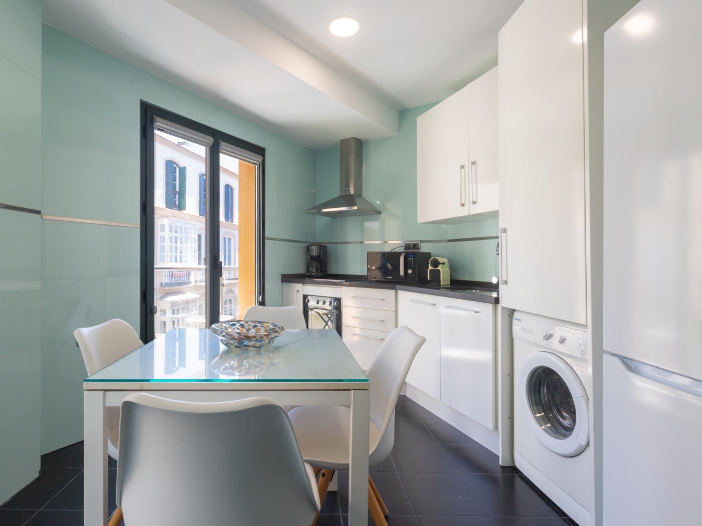 Se trata de un alojamiento luminoso en pleno centro histórico de la ciudad, a dos minutos andando de la plaza de la Merced y a tres minutos de la Catedral y del Museo Picasso. Un emplazamiento ideal para disfrutar del ambiente centro, las calles de compras, los restaurantes y los monumentos y museos más importantes de Málaga.