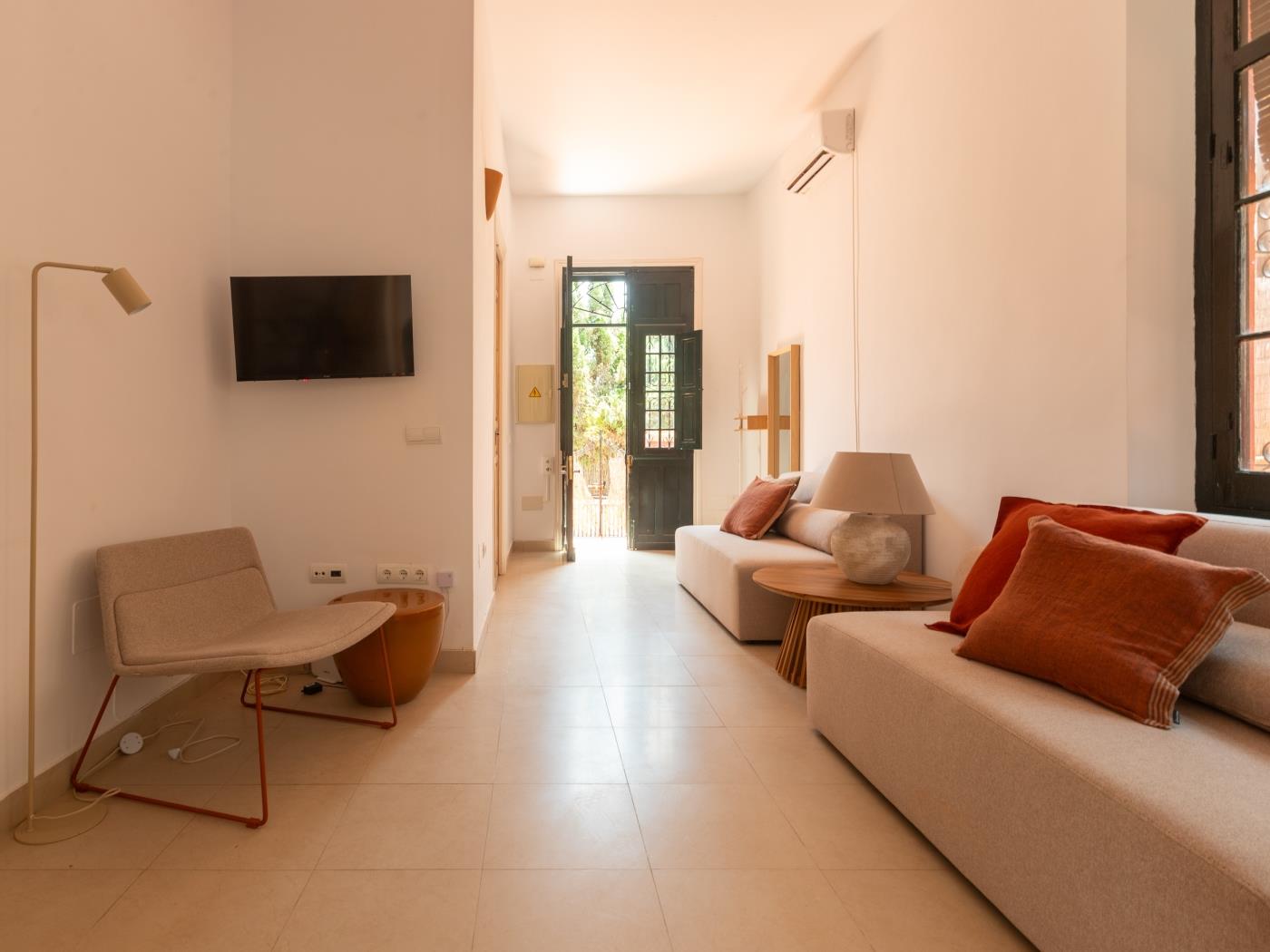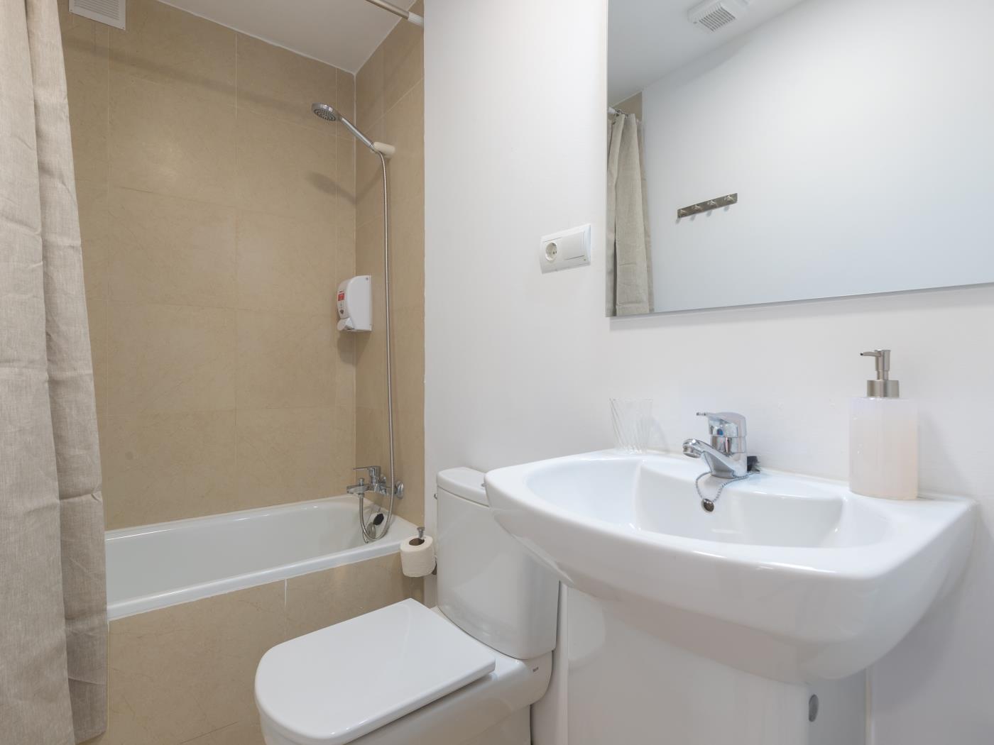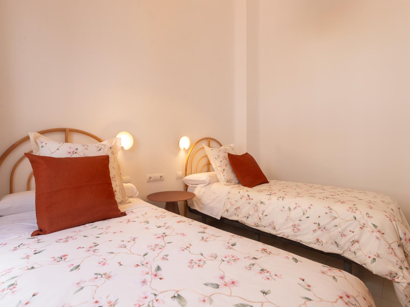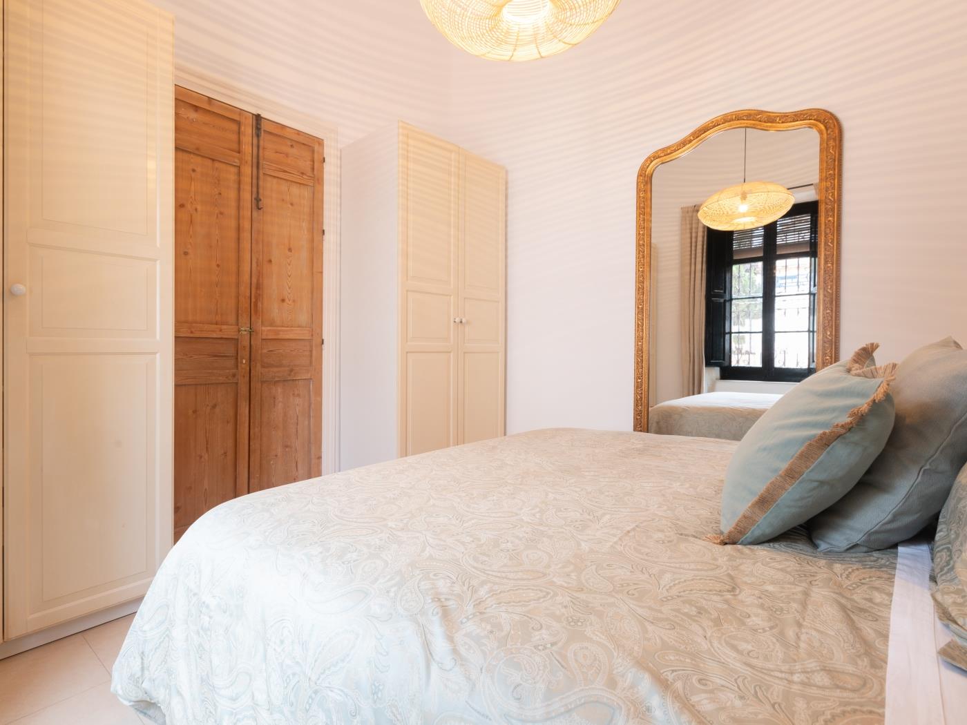 Very bright and quiet. Free parking in a nearby building. Spacious and bright living room with a dining table, sofas, a comfortable reading chair, and a smart TV. Fully equipped kitchen, two bathrooms (one with a shower and the other with a bathtub), and three bedrooms. The main bedroom has a double bed (180x200 cm) and a window overlooking the porch. The second bedroom has two single beds and a window overlooking the patio. The third bedroom has a single bed and a window overlooking the patio. There are two air conditioning units in the living room.